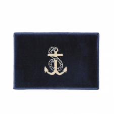 Marineblå teppe med anker motiv, med en solid kant.