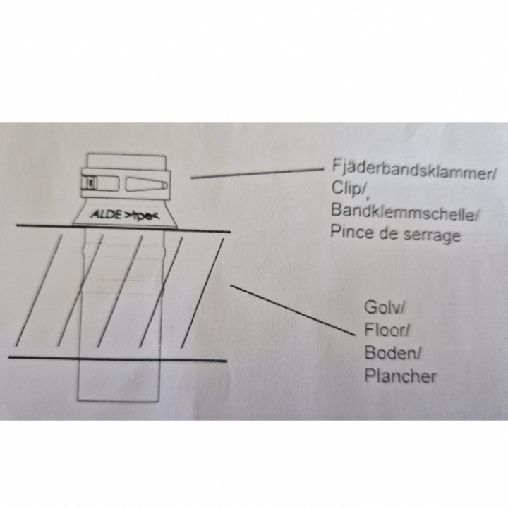 Monter fjærbåndklemmen med maksimal avstand til toppen av gulvgjennomføringen (se skisse).