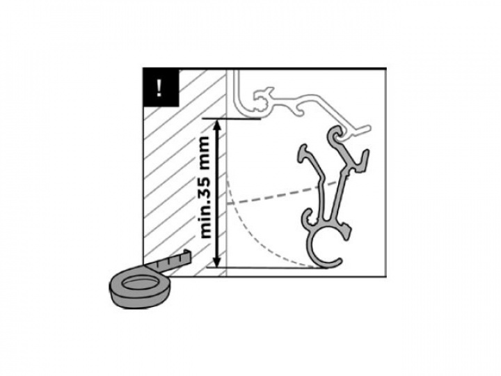 Monteringsprofil for Thule som dekker gapet under markisen, som innebærer at monteringsbeslagene til markisen ikke lenger vil synes.