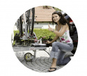 Avtagbar sveiv med trykklager. Lett kontroll av kuletrykk. Innebygd fjæring forenkler ved flytting av vognen over ujevnheter.