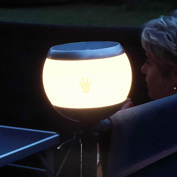 Solcellelampen er designet for å monteres på Isabellas vindskjerm, men kan også brukes på campingbordet som hyggebelysning, da den er lett å flytte rundt på. Etter 6 timer i solen er lampen fulladet og lyser deretter med et behagelig varmt lys i 6-7 timer.